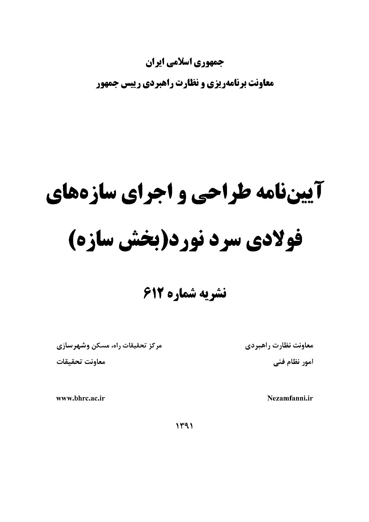 نشریه ۶۱۲-آیین نامه طراحی و اجرای سازه های فولادی سرد نورد-بخش سازه