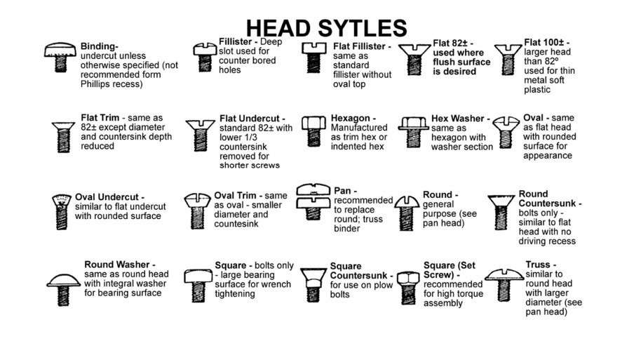 مشخصه مهم دیگر پیچ ها که در ساخت و ساز صنعتی با سازه ال اس اف LSF مهم می باشد، نوع کلگی یا سر پیچ ها (Head Style) می باشد که بسته به جنس دو عضو متصل شونده به یکدیگر متفاوت می باشد. در شکل زیر انواع کلگی ها یا سر ها نشان داده شده است.