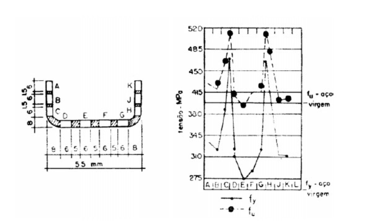 از آنجایی که نواحی اصلی تحت تأثیر فرآیند شکلدهی سرد، گوشهها هستند، این مناطق دارای خواص مکانیکی متفاوت از سایر مناطق مسطح خواهند بود. شکل ذیل تغییرات خواص مکانیکی را در امتداد سطح مقطع پروفیل U شکل نشان می دهد.