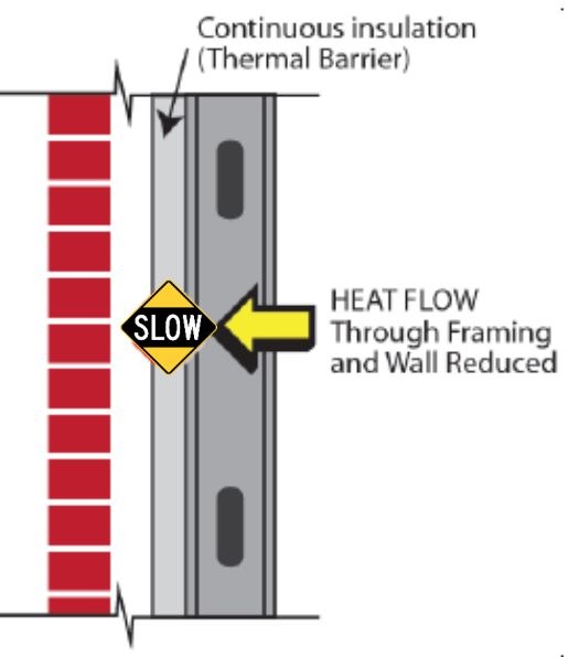 - قرار دادن یک لایه عایق پیوسته در سمت خارجی قاب سازه ال اس اف LSF