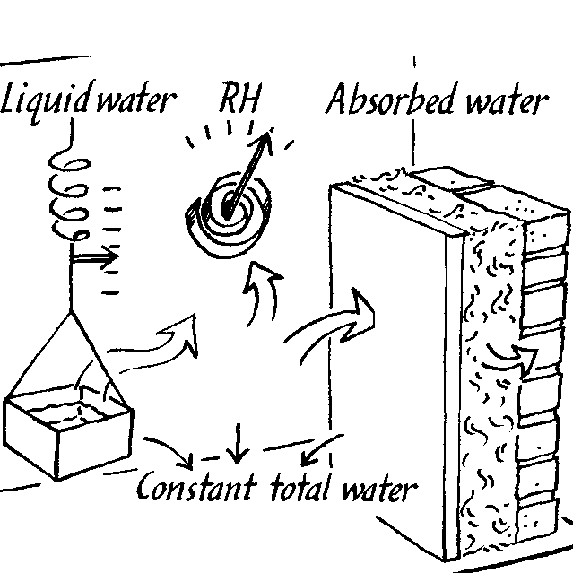 به عنوان مثال، چوب یک ماده جاذب رطوبت است که به طور مداوم رطوبت را در طول سال جذب و آزاد می کند و به تغییرات فصلی در شرایط تعادلی رطوبت پاسخ می دهد. این ویژگی میتواند مفید باشد زیرا اجازه میدهد رطوبت در دورههای رطوبت زیاد ذخیره شود و متعاقباً در زمانهای خشکتر دفع شود. که این می تواند اثرات بافری مفیدی را ایجاد کند. با این حال، اگر میزان رطوبت از مقدار قابل تحمل فراتر رود، عواقب آن می تواند مضر باشد و منجر به پوسیدگی، رشد کپک و منجر به تضعیف اجزای سازه ای در طولانی مدت شود.