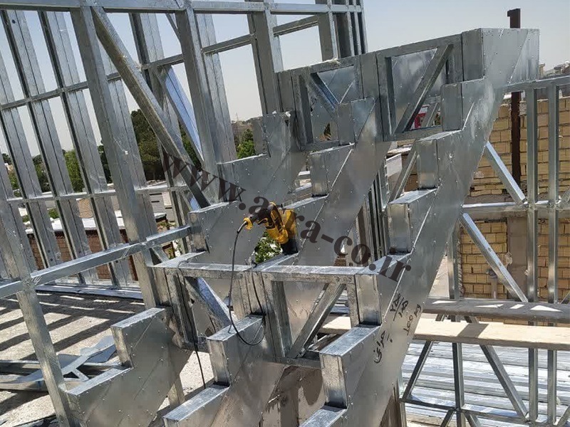 - ساخت پله ال اس اف LSF به صورت شمشیری و اتصال آن به سازه بتنی